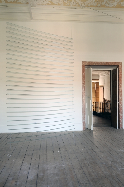 Over one year in residency at Carpe Diem Art and Reasearch, Edgar Pires gave continuity to his in situ intervention projects, developed in previous exhibitions. At the Pombal Palace, where he has explored sunlight as source for the creation of images adapted to the unique characteristics of the White Room. Edgar Pires developed numerous spontaneous tests on its interior, through processes that gave rise to ephemeral light images, mostly documented in photography, other, more specific, video. At this stage, there were no objects just the idea of an installation composed only of light/reflections, projected inside the palace installation. The purpose of this project has changed and culminated in a set of three sculptural flat glass objects that will filter the sunlight coming through the windows, and cause a transformation in terms bright inside the room for two hours.